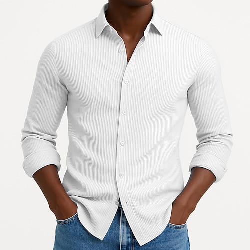 Per uomo Camicia Camicia casual Camicia di Velluto a Coste Camicia con Bottoni Blu Nero Bianco Blu marino Marrone Manica Lunga Semplice Collo ripiegato Casuale All'aperto Caldo Abbigliamento Vacanza