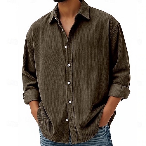 Per uomo Camicia di Velluto a Coste Nero Viola Marrone Grigio Manica Lunga Semplice Colletto Collo ripiegato Casuale All'aperto Tasca Abbigliamento Vintage Classico Casual