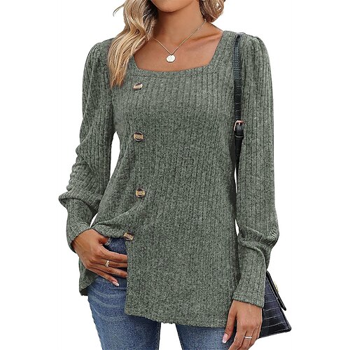Per donna Blusa con texture Maglietta Bottoni Semplice Moda Moderno Manica Lunga Collo quadrato Top Regolari Quotidiano Uscire Blu Marrone rossastro Nero Rosso Marrone chiaro Primavera Autunno