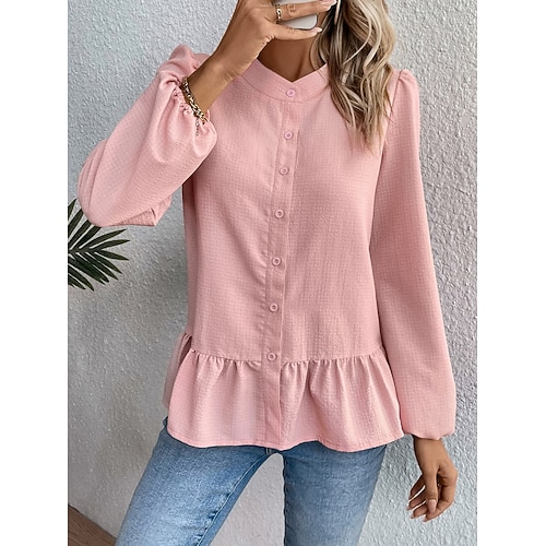 Per donna Camicia Blusa Camicetta con volant Patchwork Bottoni Semplice Elegante Classico Moderno Manica Lunga Collo alla coreana Top Regolari Quotidiano Ferie Uscire Rosa Estate Primavera