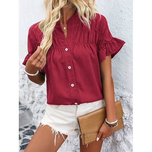 Per donna Camicia Blusa Tinta unica Elegante Casual Manica Corta Collo a V Top Regolari Quotidiano Blu Nero Bianco Fucsia Estate Primavera