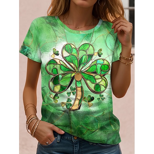 Maglietta da donna di San Patrizio casual a manica corta a girocollo top regolari stampa quotidiana verde estate