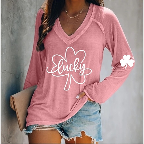 Giorno di San Patrizio Festa di San Patrizio Per donna Maglietta Trifoglio Lettera Moda Manica Lunga Scollo a V Top Regolari Casuale Giorno di San Patrizio Stampato Blu Bianco Rosa Verde Grigio