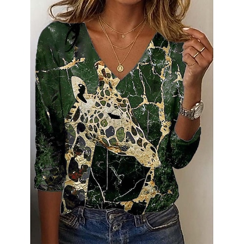 Per donna Tunica Maglietta Leopardo Blocco di colori Giraffa Vintage Elegante Casual Manica Lunga Scollo a V Top Regolari Quotidiano Sportivo Weekend Stampato Blu Giallo Viola Verde Autunno