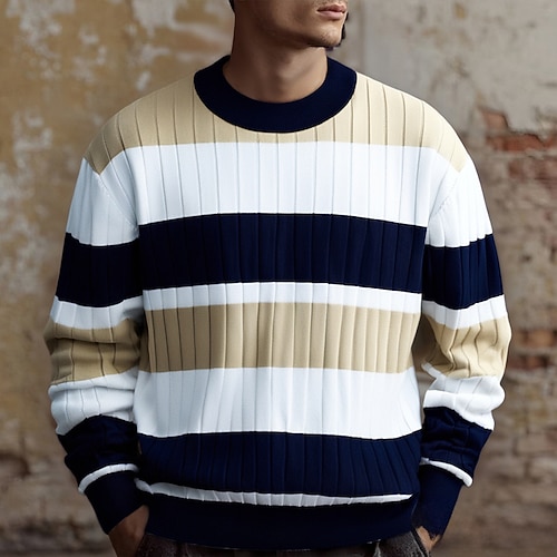 Per uomo Felpa Maglione di lana Maglione A Coste Maglia Top Regolari Lavorato a maglia Semplice Girocollo Moda Streetwear Abbigliamento quotidiano Uscire Abbigliamento Autunno Inverno Cammello