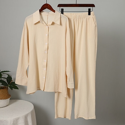 Per donna Moda Streetwear Set di Pantaloni Bolero Top Manica Lunga Colletto a Camicia Tinta unica Cerniera All'aperto Lavoro Casuale Nero Vino Cammello Primavera Taglia piccola