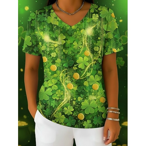 Festa di San Patrizio Per donna Maglietta Trifoglio Elegante Classico Casual Manica Corta Scollo a V Top Regolari Quotidiano Abbigliamento mare Abbigliamento da vacanza Stampato Verde primavera Verde