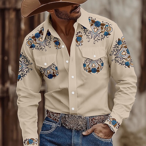 Per uomo Stampa Floreale Etnico Fiori Camicia Camicia Western Camicia da cowboy Manica Lunga Vintage Retrò All'aperto Casuale Abbigliamento da lavoro Primavera Autunno Collo ripiegato Due tasche