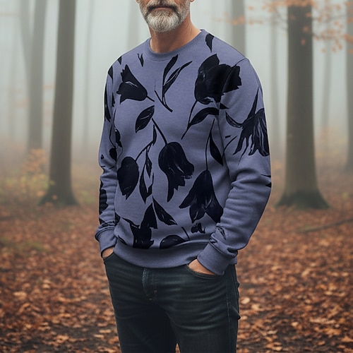 Per uomo Stampa Floreale Fiori / Piante Felpa Felpe Manica Lunga Felpa Girocollo Vintage Retrò Stampa Ferie Uscire Festival Stampato Autunno Inverno