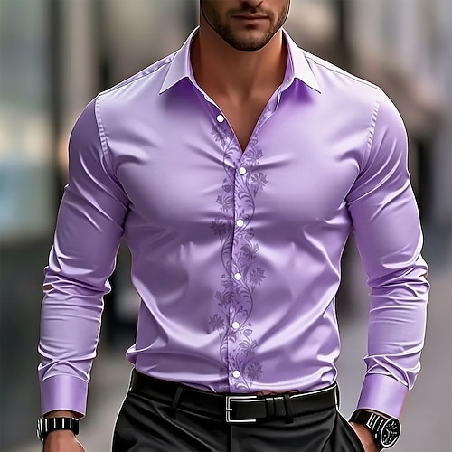Per uomo Floreale intricato Fiori Camicia Camicia Western Camicia da cowboy Manica Lunga Vintage Retrò All'aperto Vacanza Primavera Autunno Collo ripiegato Stampa 3D Camicia tipo lino Viola