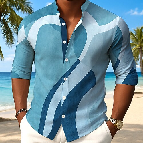 Per uomo Geometrico Sfumatura Con onde Camicia Camicia con colletto alla coreana Camicia casual Manica Lunga Business Casual Vacanza Casa Quotidiano Estate Primavera Collo alla coreana Colletto alla
