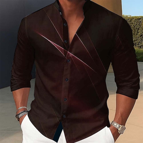 Per uomo Geometrico Colore sfumato Camicia Camicia con Bottoni Camicia con colletto alla coreana Manica Lunga Casual All'aperto Vacanza Quotidiano Primavera Autunno Collo alla coreana Colletto alla