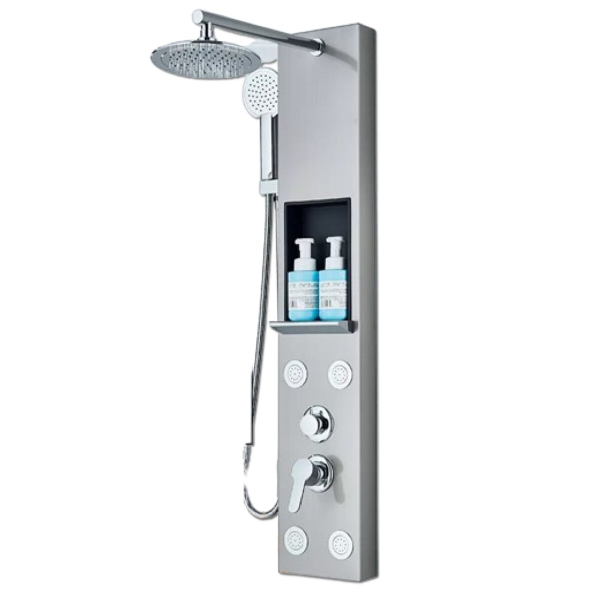 KLARWERK® BEN | Duschpaneel Edelstahl Silber mit Kopfdusche & Handbrause | Duschsäule mit Massagedusche |Duschsystem Mischbatterie Regen Duscharmatur