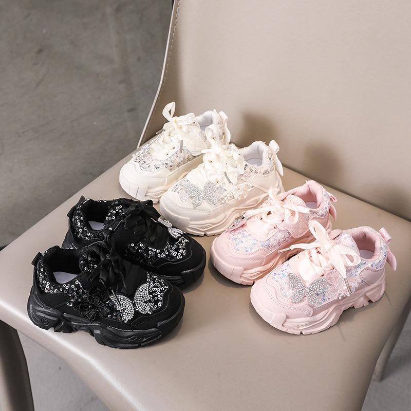 Flickors Mjuka Anti-halk Löparskor med Rosett | Barns Mångsidiga Sneakers för Småbarn Eleganta Glittriga Mary Janes cm vit