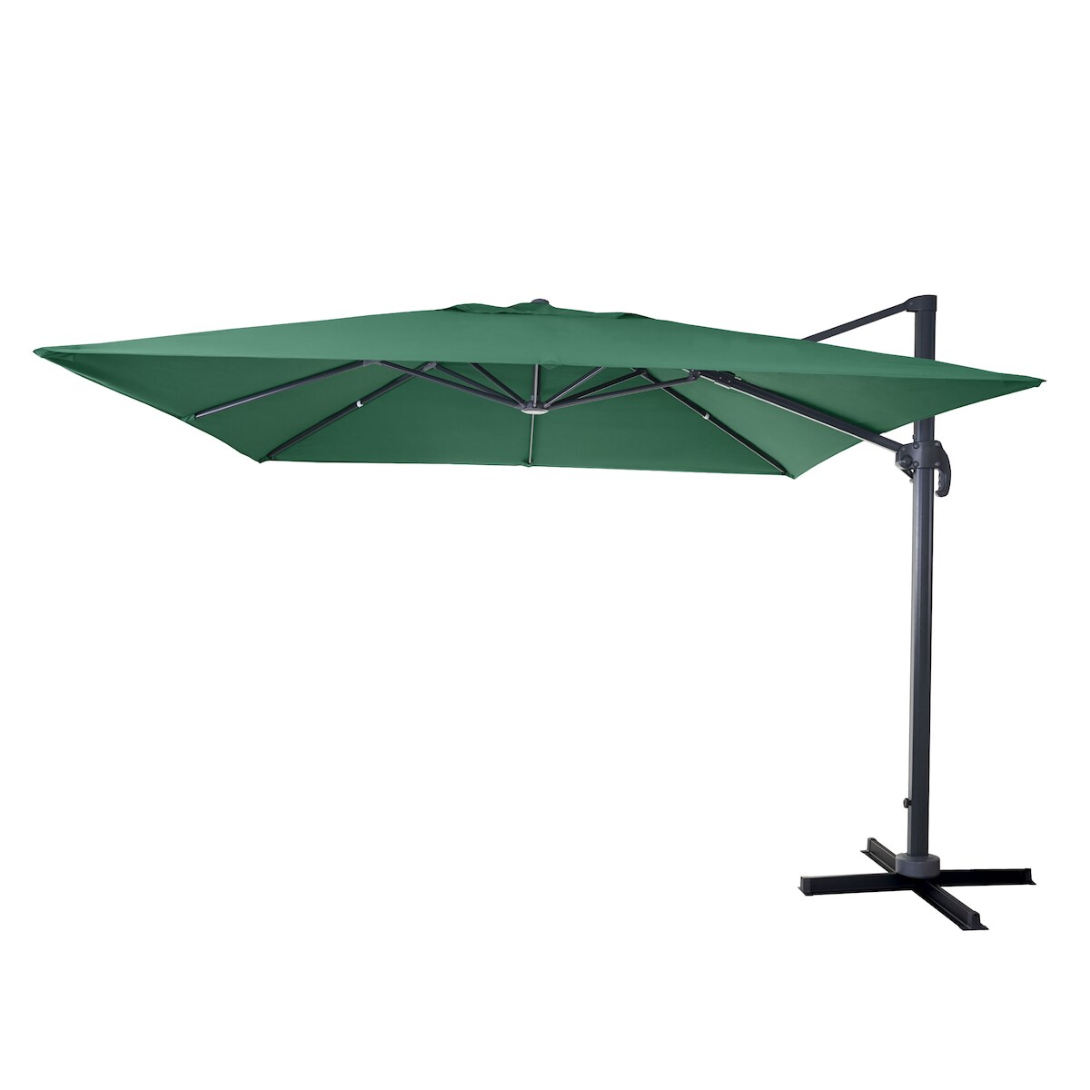 Mendler Gastronomie-Ampelschirm HWC-A96, Sonnenschirm 3x3m (Ø4,24m) Polyester Alu/Stahl 23kg ~ dunkelgrün ohne Ständer, drehbar