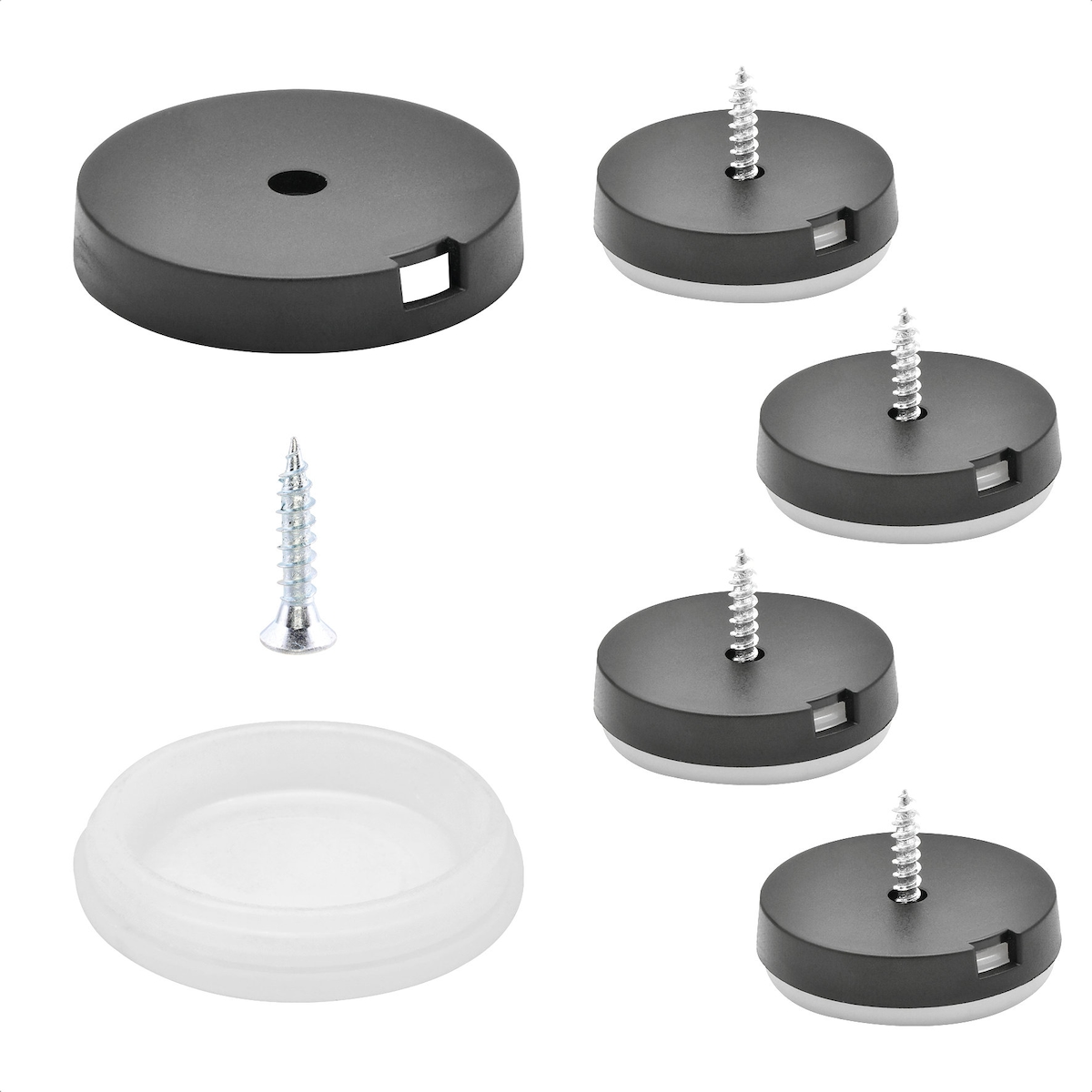 WAGNER QuickClick® Plastikgleiter antirutsch STOPP - zum Schrauben, 4x Basis&Schraube&Einsatz Ø 30 mm, DE-Ware- 15804300