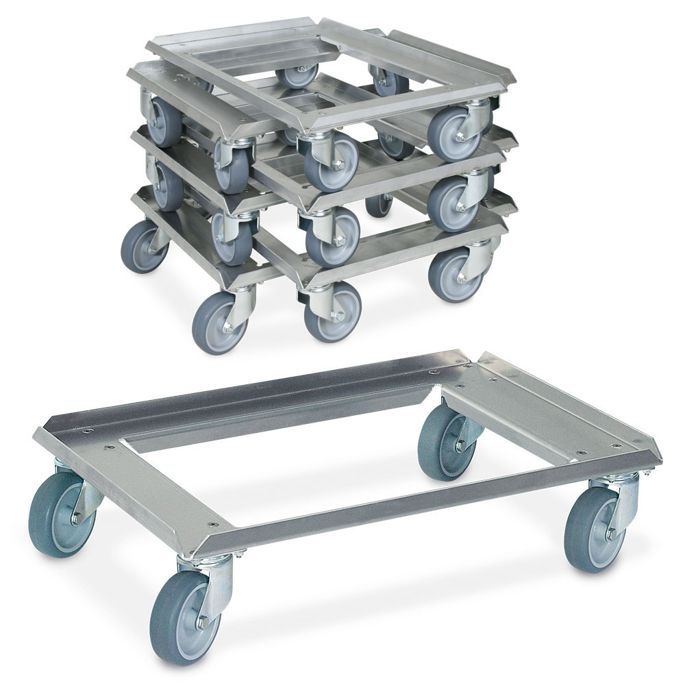BRB Set, 7 Logistikroller/Kistenroller für Behälter 600 x 400 aus Aluminium, Tragkraft 250 kg