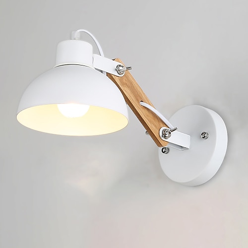 Lightinthebox applique vintage con cavo e interruttore lampada da parete in legno e27 lampade da comodino camera da letto supporto regolabile in ottone luci da parete per soggiorno interno 110-240v