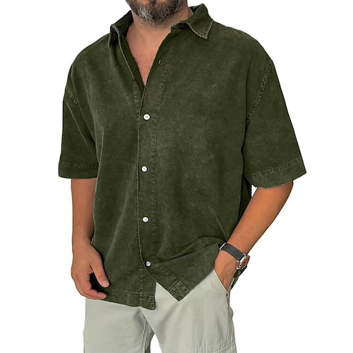 Per uomo Camicia Camicia casual Camicia con Bottoni Camicia lavata con acido Nero Bianco Blu marino Kaki Verde militare Manica Corta Semplice Colletto a Camicia Casuale Quotidiano Tasca Frontale