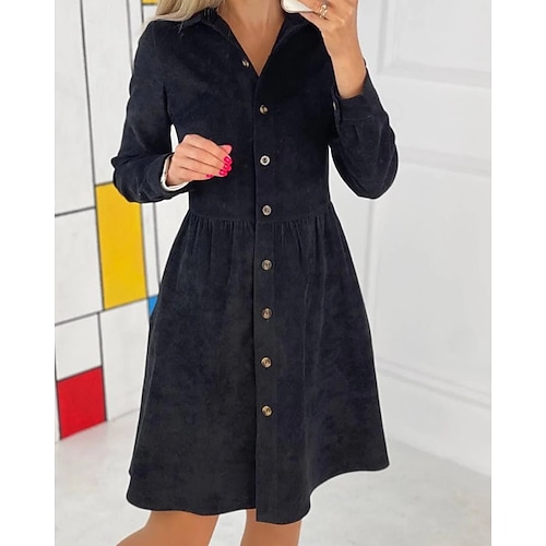 Per donna Mini Abito Abiti ispirati al lino Abito Camicia Vestito Casual Moda Classico Quotidiano Weekend Vestibilità regolare Semplice Manica Lunga Colletto a Camicia Nero Bianco Verde Albicocca