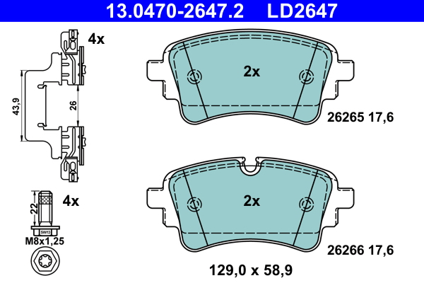ATE Bremsbelagsatz, Scheibenbremse 13.0470-2647.2 hinten rechts links mit Zubehör für VAG 80A698451K 4N0698451D 8W0698451AG