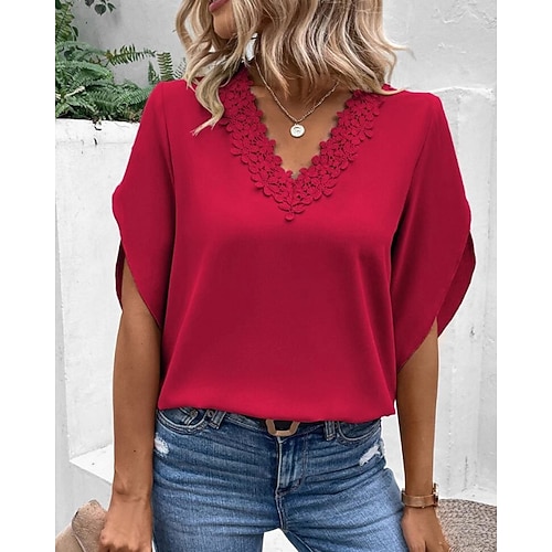 Per donna Blusa Semplice Attivo Casual Manica 3/4 Scollo a V Top Regolari Quotidiano Ferie Uscire Stampato Nero Rosa Rosso Cachi Azzurro Estate Primavera