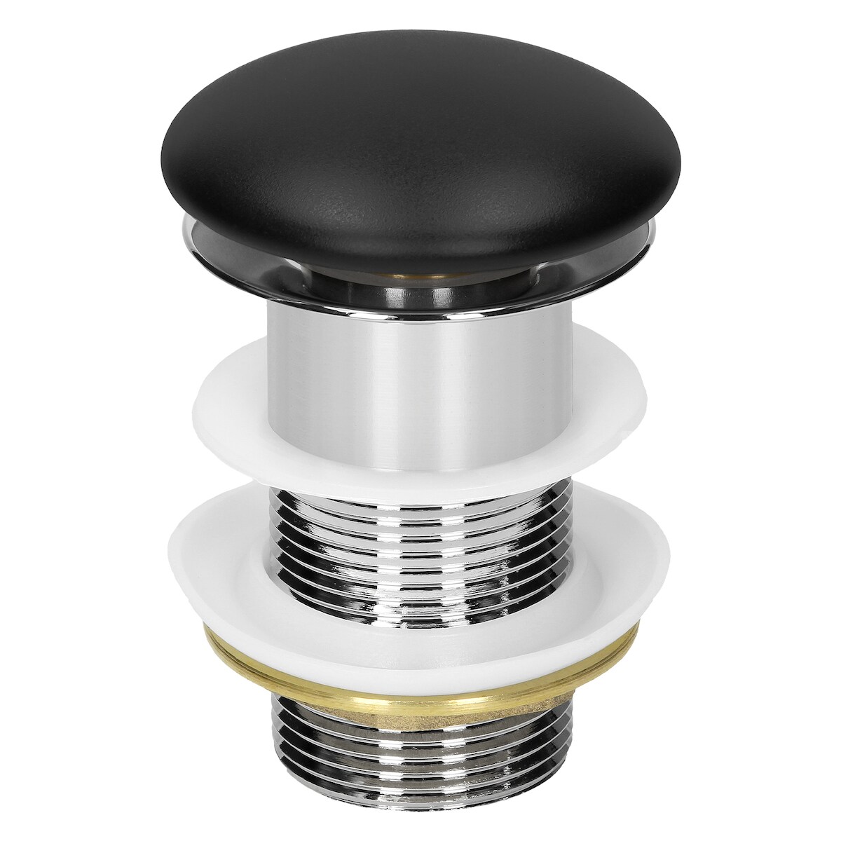 LuxeBath ML-Design Universal Ablaufgarnitur 1 1/4" ohne Überlauf – Pop-Up, Keramikdeckel Schwarz/Edelstahl, inkl. Dichtungen