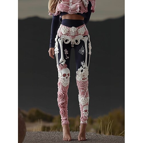 Leggings da donna Vacanza Moda Vintage Lunghezza Completa Alta Vita Pantaloni Grafica Stampa Teschio Morbido Traspirante Elasticizzati Formale Vacanza Strada Bianco/Rosa Nero Rosa Arancione Primavera