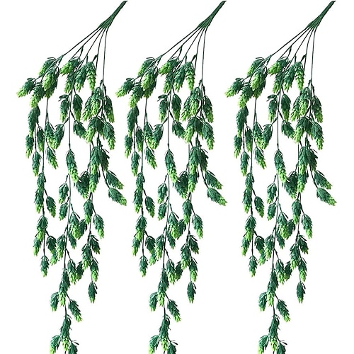 3 ghirlande di ananas artificiali, 5 steli di piante finte rosa satinato, piante finte sospese per la casa decorazione di nozze