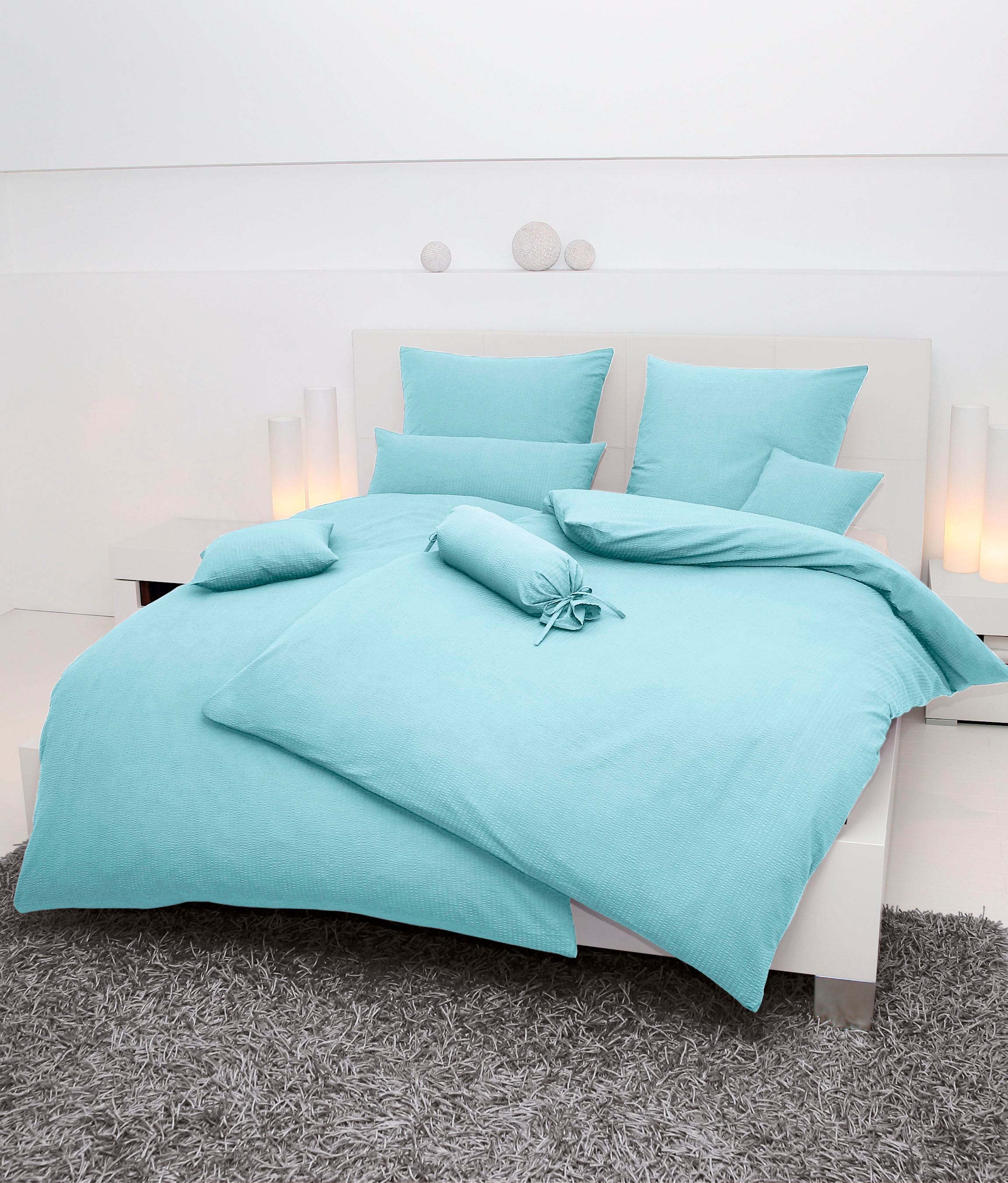 Bettwäsche JANINE "PIANO 0125", grün (hellgrün), B/L: 155cm x 220cm, , Soft-Seersucker, B/L: 80cm x 80cm, Soft-Seersucker, Obermaterial: 100% Baumwolle, Bettwäsche, mit Reißverschluss, 100% Baumwolle, mit toller Struktur, Premium