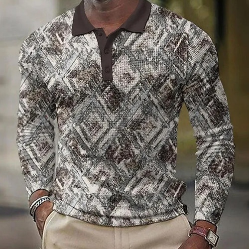 Per uomo Blocco di colori Geometrico Magliette Polo a Nido d'Ape Manica Lunga Magliette polo Camicie con Colletto Business Casual Affari Abbigliamento da lavoro Abbigliamento quotidiano Bottoni