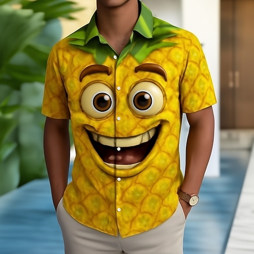 Per uomo Frutta Fantasia Cartone 3D Faccia Sorridente Camicia Camicia con Bottoni Manica Corta Gotico punk oscuro Ferie Estate Primavera Collo ripiegato Stampa 3D camicie con colletto Giallo