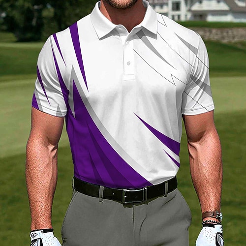 Per uomo Geometrico Golf Polo Sportivi Manica Corta Magliette polo Bavero Casual All'aperto Athleisure Stampa 3D Bottoni Estate Blu Rosso Viola