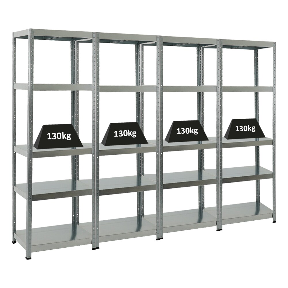 PROREGAL 4x Schwerlastregal Steel Eagle | HxBxT 180x60x40 cm | Fachlast 130kg | Verzinkt | Stecksystem Lagerregal Regalsystem 4 Stk.
