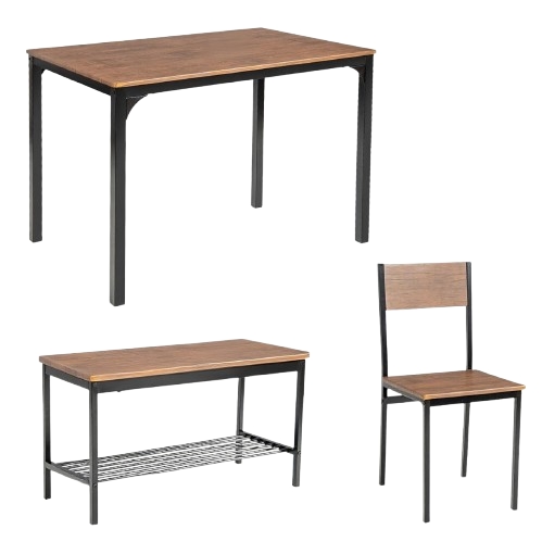 COSTWAY Esstisch Set 4 Stück, Küchentisch mit 2 Stühlen & 1 Bank & Regal, Industrie Esszimmer Tisch