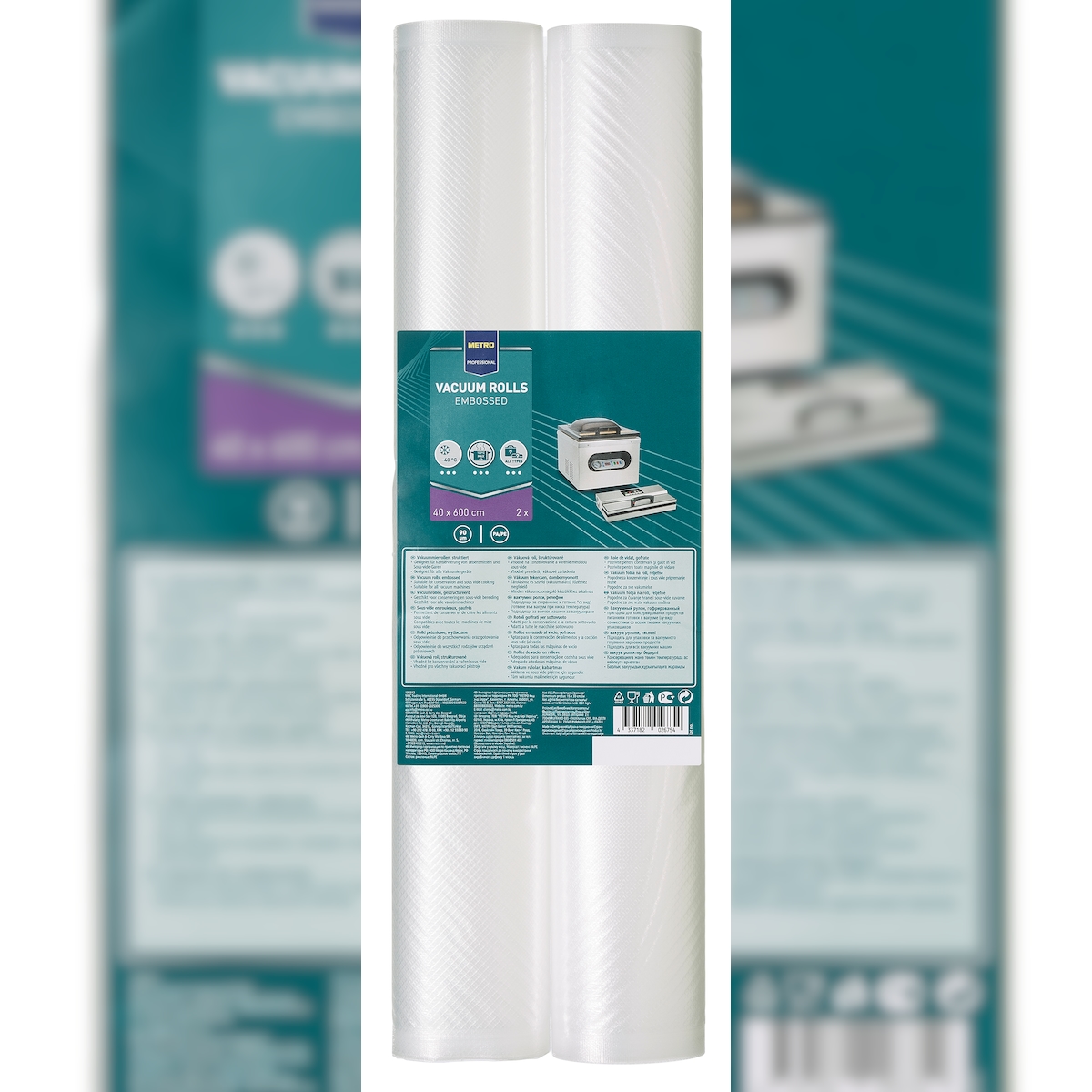 METRO Professional Vakuumierfolie-Rolle, 40x600 cm, 90/100 µm, glatt/geprägt, 2 Stück