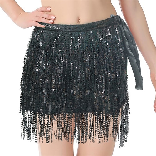 Carnevale 2026 Abbigliamento da danza Samba di Rio Carnevale Gonna avvolgente in paillettes - Sciarpa per fianchi da danza del ventre gonna a frange scintillanti Costume da rave Brasile Festival