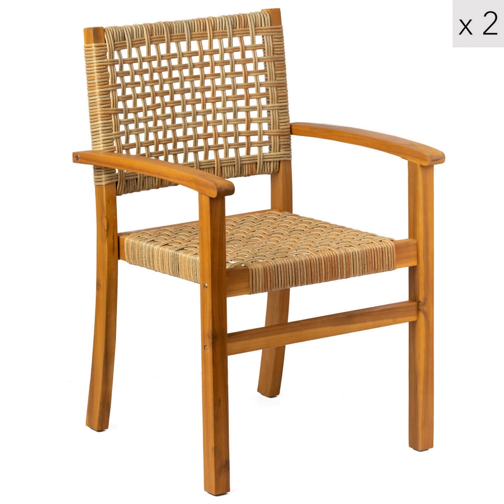 Set 2 sedie di giardano in legno di acacia e corda