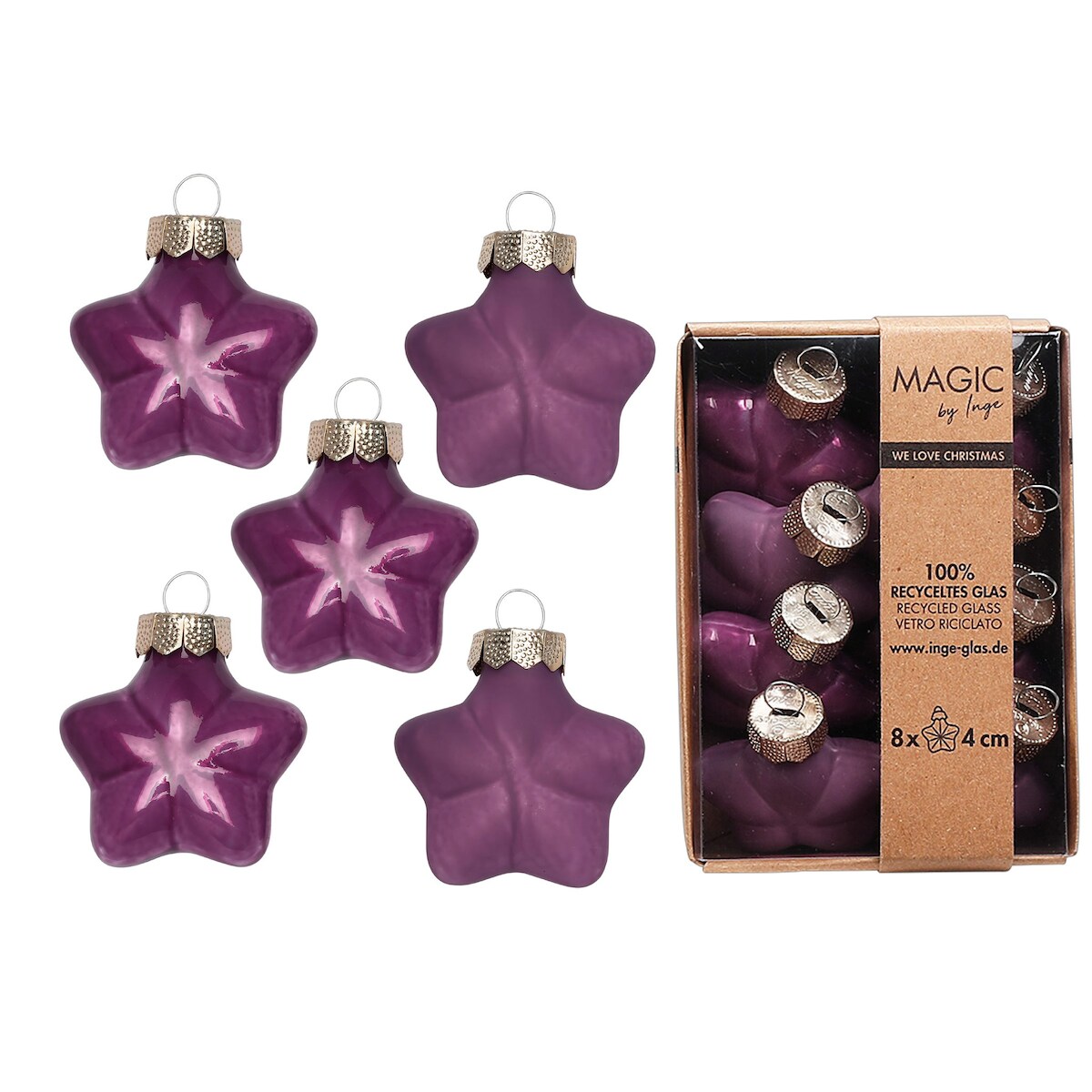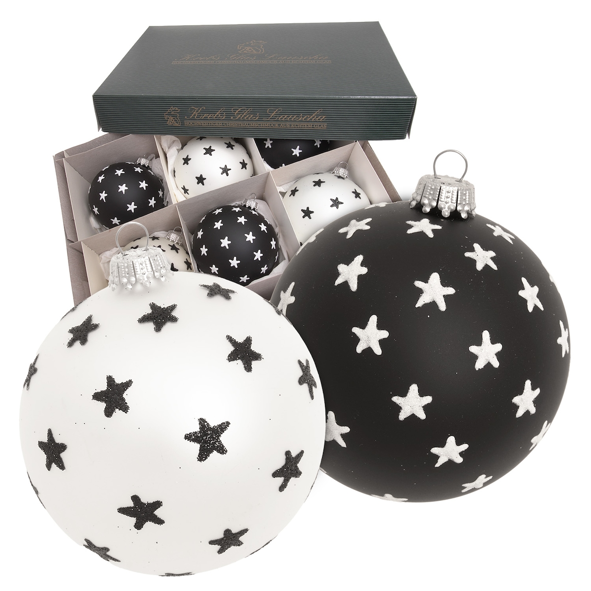 Krebs Glas Lauscha Kugeln Sterne, Weiß & Schwarz Satin, 8cm