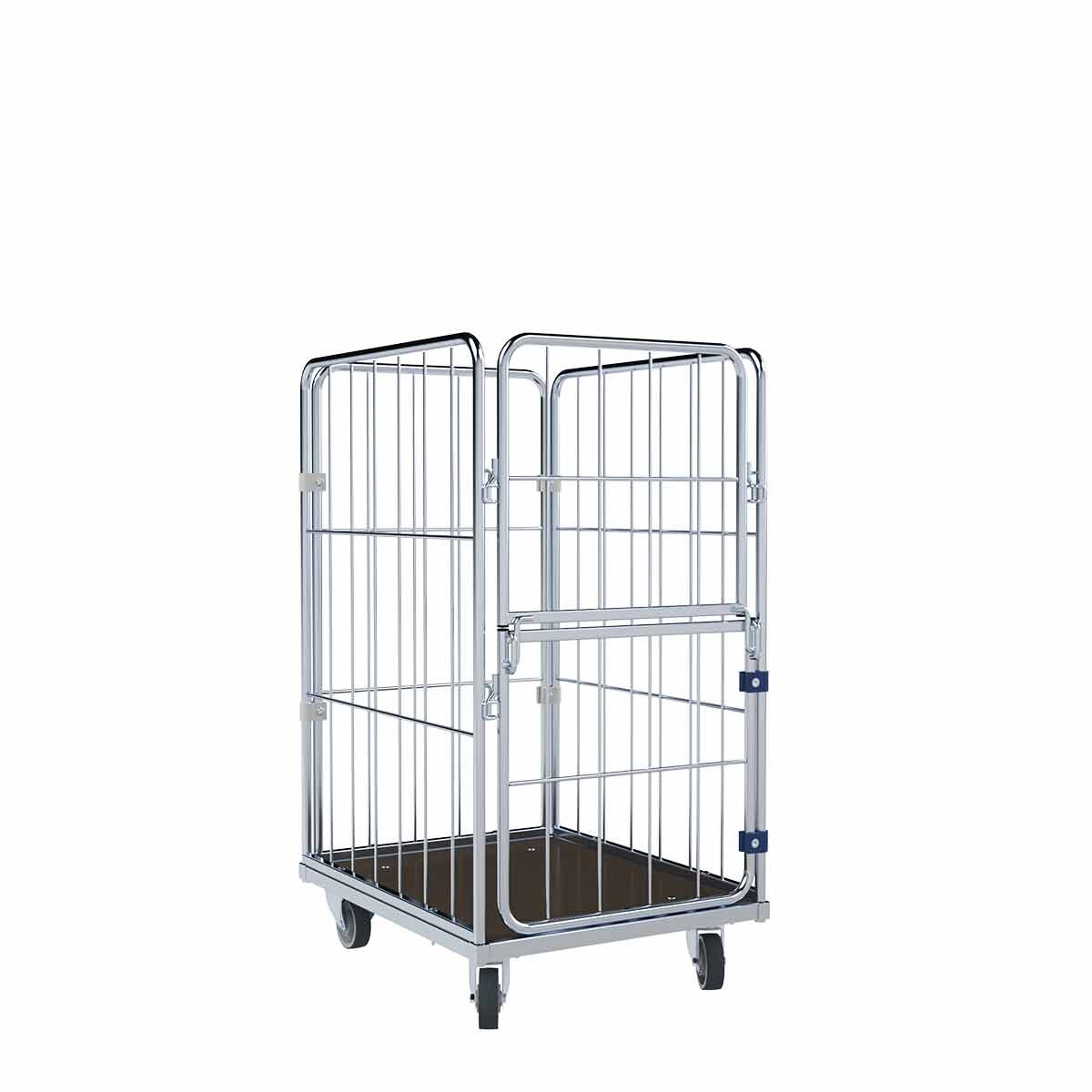 Oswald Transportgeräte Wäschewagen Nutzhöhe 1.200 mm, Holzboden, 4-seitig, Vorderwand klappbar/schwenkbar, 720 x 810 x 1.350 mm, 400 kg