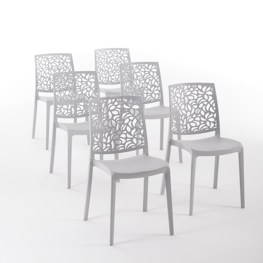RATTATAN 6er-Set stapelbare Stühle aus Polypropylen mit Glasfasern für Außenbereich und Garten, Bar und Restaurant, Küche modernes Design - ANNA - Hellgrau
