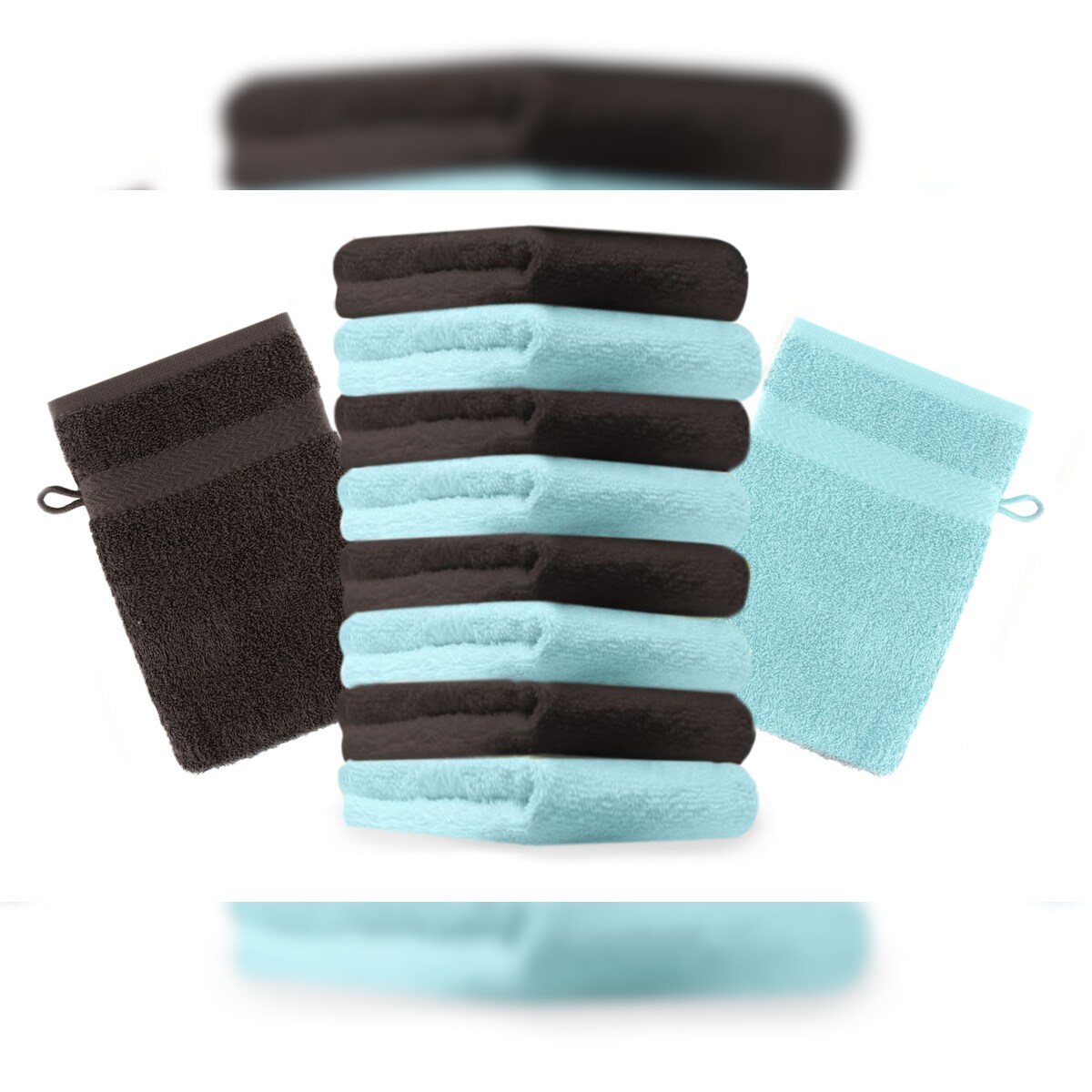 Betz 10 Stück Waschhandschuhe PREMIUM 100% Baumwolle Waschlappen Set 16x21 cm Farbe dunkelbraun und türkis