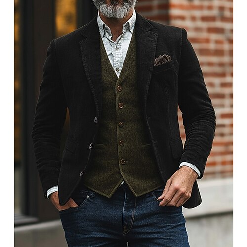 Per uomo Giacca in Velluto a Coste Colletto ad incastro Moda Classico Casual Tinta unita Blazer Nero Marrone Verde Vestibilità su misura Monopetto a tre bottoni