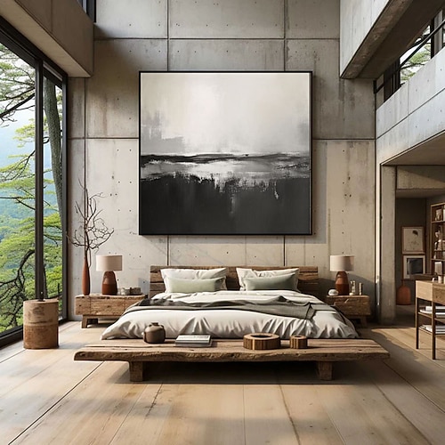dipinto a olio fatto a mano su tela, decorazione da parete, astratto in bianco e nero per la casa, dipinto appeso su telaio teso/dipinto arrotolato senza cornice