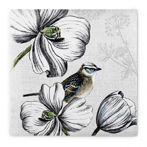 MANK Airlaid Serviette Isabeau, 40 x 40 cm, 50 Stück - stoffähnlich elegant Floral Vögel Blumen