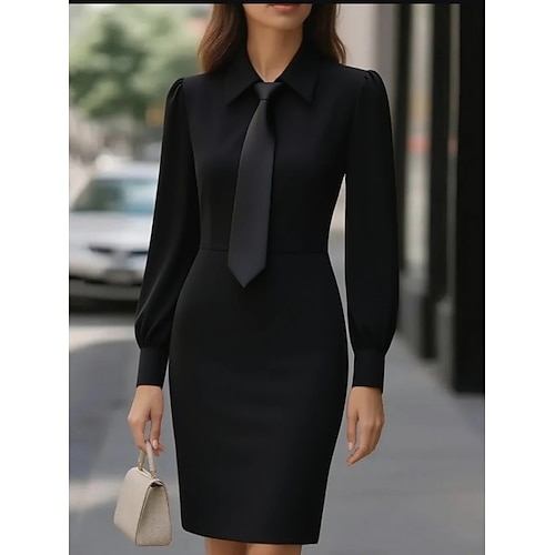 Per donna Abito Midi Tubino Abiti semi formali Ufficio Vestibilità regolare Semplice Manica Lunga Girocollo Nero Bianco Rosa Primavera Autunno Inverno