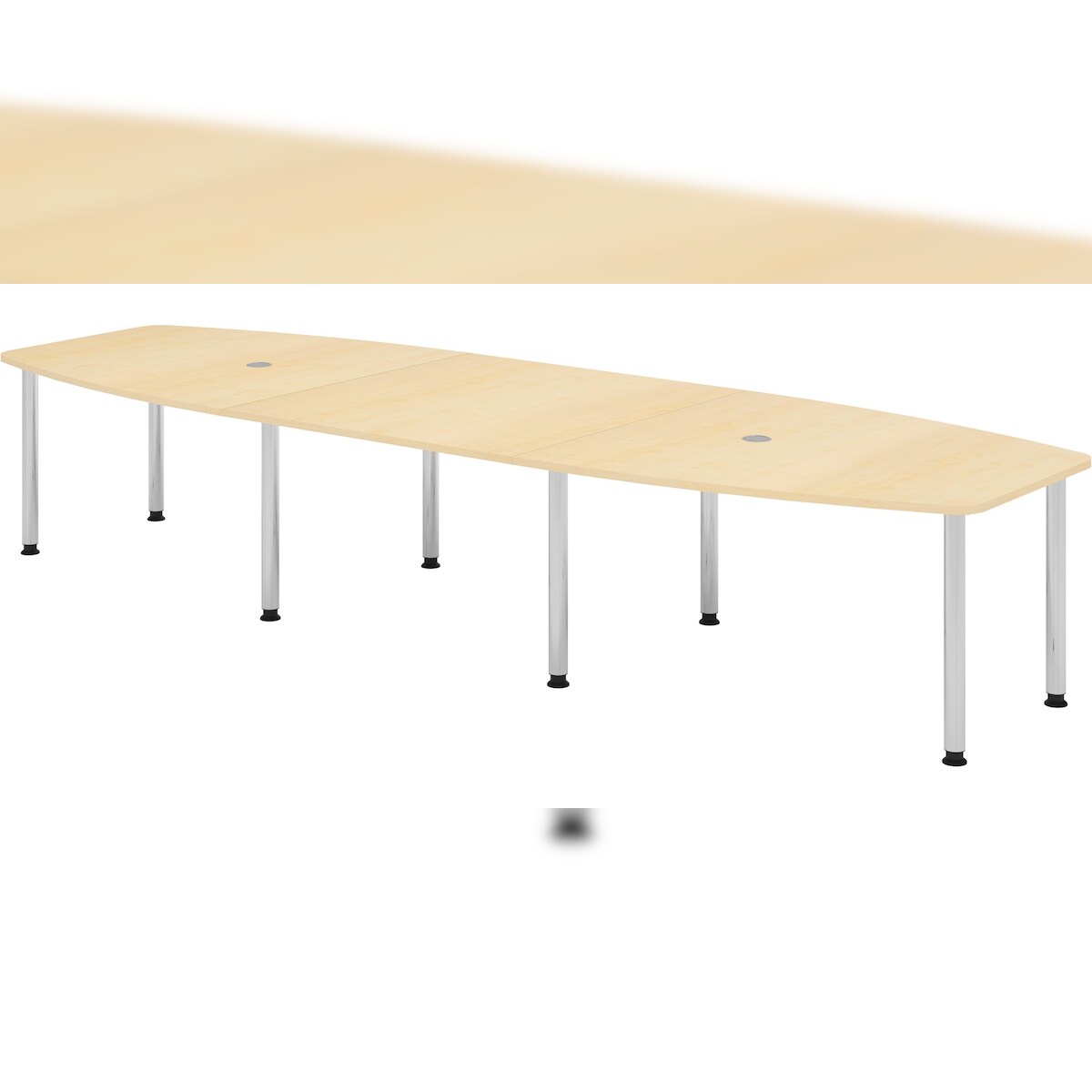 bümö Konferenztisch oval 220x103 cm großer Besprechungstisch in Ahorn, Besprechungstisch mit Gestell in Silber, Meetingtisch für 8 Personen, XL-Tisch