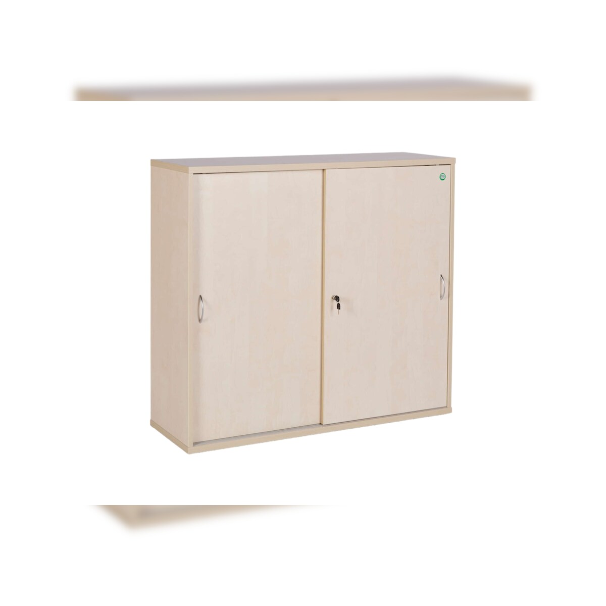 bümö Sideboard Ahorn/Silber mit Flügeltüren & Regal - Büromöbel Sideboard Holz 166cm breit, 45cm schmal, Büro Schrank für Flur oder als