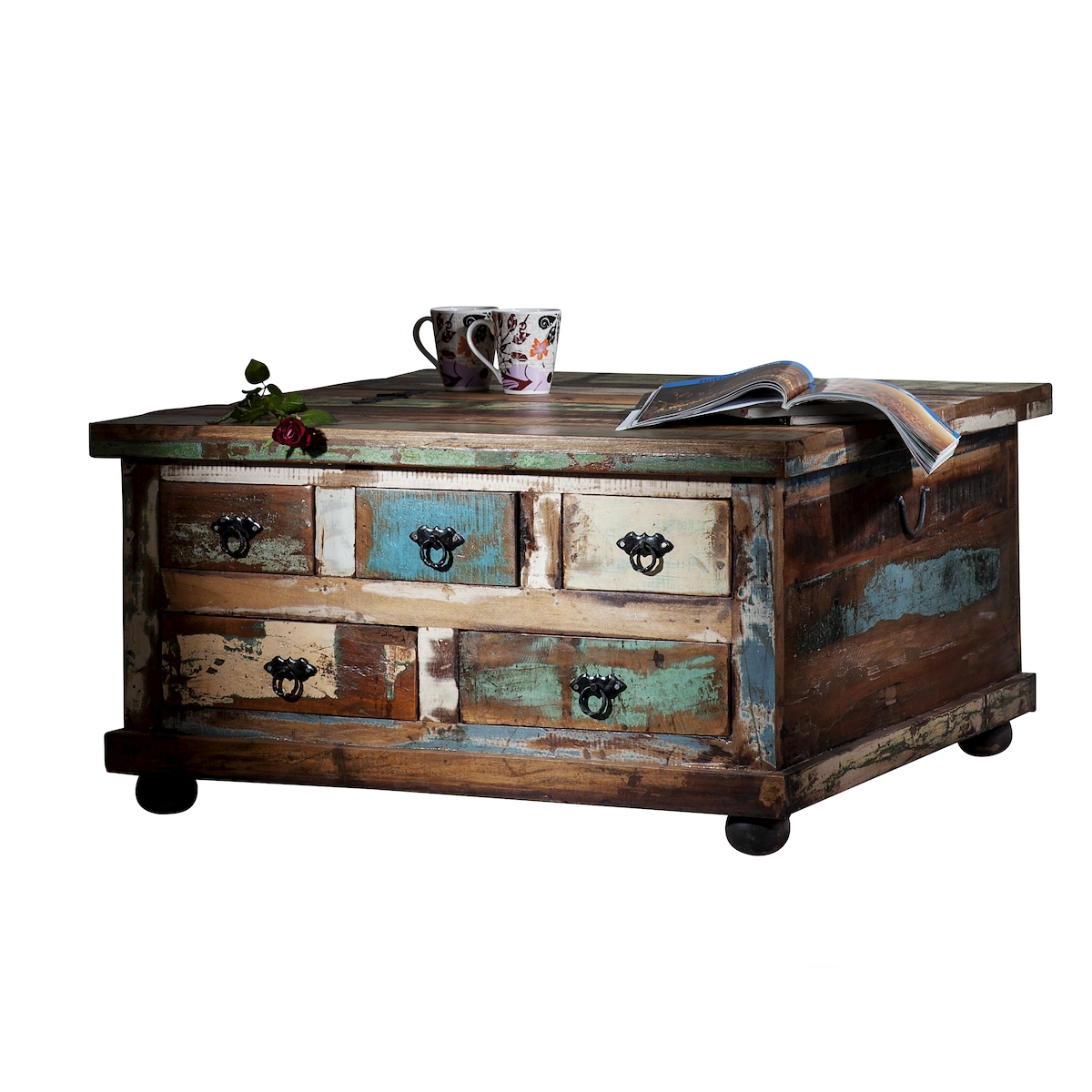 SIT Möbel Couchtischtruhe | 5 Schubladen, 1 Klappe | Altholz bunt lackiert | B 90 x T 90 x H 47 cm | 09194-98 | Serie RIVERBOAT