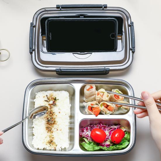 Set 304 Edelstahl Lunchbox Mikrowellenheizung Bento Box Obst Lebensmittel Soße Frischhaltebox Kühlschrankbehälterbox